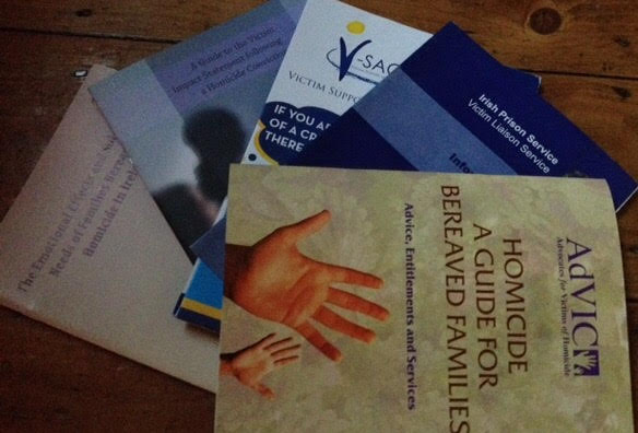 Both booklets are sent to every Garda station investigating a new homicide, asking the Family Liaison Officer assigned to the investigation team to pass it on to the family of the deceased. If you are a family of a homicide victim who did not get the booklets from the Garda, please contact us and booklets will be sent it to you by post.